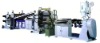 This production line is capable of continuously producing mono-layer PP/PE/ABS/PMMA/PC/PS/HIPS plate and sheet with the width less than 3000mm and thickness of 0.25-30mm.The products are widely used in the fields of refrigerator,air conditioner,auto,advertisement,and construction,environmental protection,etc. Extruder:Appropriate single-screw extruder(exhaust or not)should be chosen on the basis of different materials.Specially designed screw and advanced temperature controlling system ensure the good plasticization,high output and stable extruding.Screen changer and mould:The quickscreen changer of hydraulic system ensures the short course of screen changing without material-leakage.Reasonable structure of mould should be chosen in termsof material,whereas moulds of clothes-rack mode are widely accepted to regulate flow-distribution and guarantee even thickness of plates(sheets). Three-roller calendaring machine:Inclined and vertical three-roller calendaring machine should be chosen according to the thickness of the plates(sheets).Temperature controller operates separately and gap among the three rollers can be adjusted freely,and the central roller has special design of regulating angle.Both ensure the excellent calendaring effect and even thickness of plates(sheets). Bracket of cooling roller:Equipped with corresponding guide roller,the cooling effect is better.In addition,the edge-shearing device equipped can guarantee fixed width of plates(sheets)and quality of edge. Landscape orientation cutting machine:It is of length-fixed cutting precision less than 2mm and adopts alloy blade of rigid alloy saw bit to ensure the good cutting effect and constantly stable performance. The winder:It is friction winder and other forms can be supplied according to customers' requirementsWidth of sheet400-2000mmThickness of sheet0.15-50mmProduction capacity30-600kg/hProduction line speed12m/min